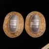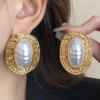 1 Pair Metal Asymmetrical Ruched Striped Ellipse Pearl Earrings BY SHEIN