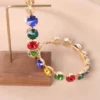 1pair Glamorous Zinc Alloy Random Color Rhinestone Decor Hoop Earrings For Women For Party BY SHEIN