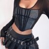 Allurite Women’s Long Sleeve Asymmetric Hem T-Shirt With Mesh Splice Design BY SHEIN