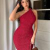 Aloruh Solid Color One Shoulder Bodycon Dress For Summer BY SHEIN