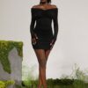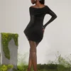 Anitta RAUL OROZCO Designer Off-Shoulder Thumb Hole Mesh Sleeves Mini Dress BY SHEIN