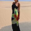 BAE Floral Print Halter Neck Backless Mermaid Hem Longline Dress BY SHEIN