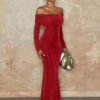 BAE Women Off-Shoulder Full Sleeve Solid Color Skinny Jumpsuit, Autumn BY SHEIN