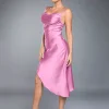 BAE Women’s Solid Color Draped Collar Asymmetrical Hem Cami Dress BY SHEIN