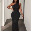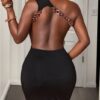 BamGleam Solid Color Backless Asymmetric Neckline Elegant Sleeveless Dress BY SHEIN