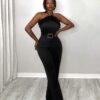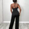 BamGleam Women’s Elegant Solid Color Ruffle Trim Buckle Belted Slim Fitted Jumpsuit BY SHEIN