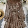 Clasi Fashion Celebrity High Quality Long Sleeve V-Neck Waist Slimming A-Line Glittering Sequin Party Dress BY SHEIN