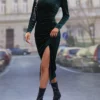 Clasi Ruched Split Thigh Velvet Dress BY SHEIN