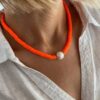 Colorful Soft Clay Necklace, Pearl Necklace BY SHEIN