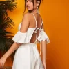 Details: Ruffle, Contrast Lace, Backless, Tie Back, Zipper