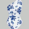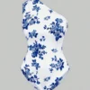 Essnce Casual Minimalist Full Print Asymmetric Shoulder Women’s Bodysuit, Summer BY SHEIN