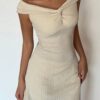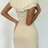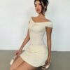 Essnce Women’s Solid Color Off Shoulder Mini Dress, Casual Vacation Twisted Open-Shoulder Elegant Short BY SHEIN