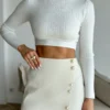 Firerie Elegant High Waisted Slimming Pearl Beige Herringbone Shorts Skirt For Autumn BY SHEIN