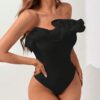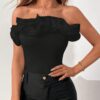 Firerie Solid Layered Ruffle Trim Tube Bodysuit BY SHEIN