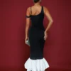 Details: Asymmetrical, Backless, Ruffle Hem