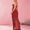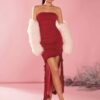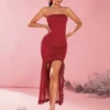 Glamour Women Backless Elegant & Charming Ruched Frill Hem Asymmetrical Strapless Dress Elegant Red Color Christmas Women Dress BY SHEIN