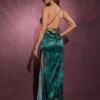 Haute Winter Women Clothes, Asymmetrical Green Tie-Dye Satin Cowl Neck Slim Backless Maxi Party Dress BY SHEIN