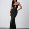 Lumivelle Black Elastic Knit Bodycon Mermaid Dress For Women, Black Elastic Knit Bodycon Dress BY SHEIN