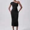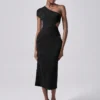 Lumivelle Black Long Textured Dress, New Fashion Slanted Shoulder BY SHEIN