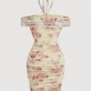 MOD Apricot-Colored Allover Print 3D Floral Pleated Holiday Dress For Summer Dates BY SHEIN