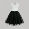 MOD Color Block Strapless Mini Dress With Bowknot & Tulle Splicing Graduation Party BY SHEIN