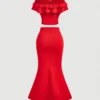 MOD Elegant Black Off Shoulder Color-Blocking Patchwork Midi Dress BY SHEIN