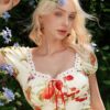 MOD Front Ruffle Lace Up Fruit Print Cute Casual Dress BY SHEIN