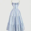 MOD Striped Tie Bow Embellished Boho Holiday Dress BY SHEIN