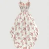 MOD Vintage Flower Print Empire Waist Peplum Hem Splicing Short BY SHEIN