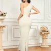 Modelyn Women Ruffle Shoulder Sleeveless Fitted Midi Dress BY SHEIN
