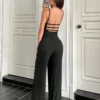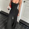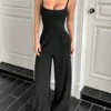 MOOSTA Ribbed Backless Minimalist Straight Leg Black Jumpsuits BY SHEIN