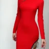 Privé Autumn Women’s Christmas Party Ball Gown Sexy Open Back High Slit Rhinestone Chain Fringe Short Dress BY SHEIN