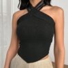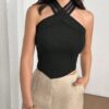 Privé Women’s Asymmetric Hem Halter-Style Sheer Backless Tank Top, Elegant For Graduation Party, Commute BY SHEIN