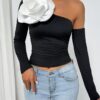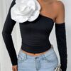 Raffinéa 1pc Women’s 3D Flower Decor One Shoulder Casual Blouse BY SHEIN