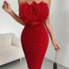 Raffinéa Exaggerated 3d Flower Decor Strapless Bodycon Dress BY SHEIN