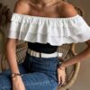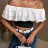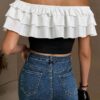 Raffinéa Women’s Color Block Ruffle Cropped Top With Ruffle Trim, Summer BY SHEIN
