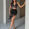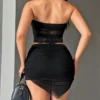 Sirith Women’s Elegant Sexy Pleated Mesh Asymmetrical Hem Skirt BY SHEIN