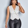 SOLERSUN Women’s Random Floral Print V-Neck Striped Asymmetrical Hem BY SHEIN