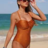 Swim Lushoire Summer Women Beach Outfits Solid Color Square Neck Tie-Up Casual One Piece Swimsuit BY SHEIN