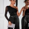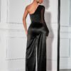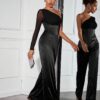 SXY 1pc Sexy Mesh Contrast Asymmetric Sleeve Formal Jumpsuit For Women BY SHEIN