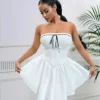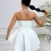 SXY Ladies’ Color-Block Strapless Asymmetrical Hem Dresses With Wireless Design For Summer BY SHEIN