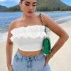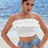 SXY Summer Beach Ruffle Trim Crop Tube Top BY SHEIN