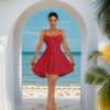 SXY Vacation White A-Hem Short Suspender Bust Pleated Strap Detail Princess Dress BY SHEIN