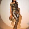 SXY Women Off Shoulder Sleeveless Shimmer Top, Minimalist Casual Daily Wear BY SHEIN