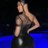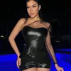 SHEIN SXY Women’S See-Through Top In Grid Jointed With Faux Leather