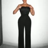 SXY Women’s Strapless Lace Splicing Wide-Leg Jumpsuit BY SHEIN