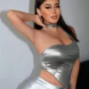 SXY x STAS SHEIN SXY Women Fashionable Summer Silver Halter Neck Top In Wild Style BY SHEIN