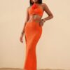 Travachic Solid Color Three-Dimensional Flower On Neckline Knit Halter BY SHEIN