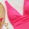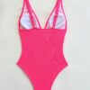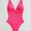 VCAY 1pc Women’s Plain Ruched Deep V Textured One-Piece Swimsuit BY SHEIN