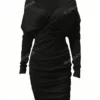 Women’s Pleated V-Neck Slim Fit Long Sleeve Midi Dress BY SHEIN